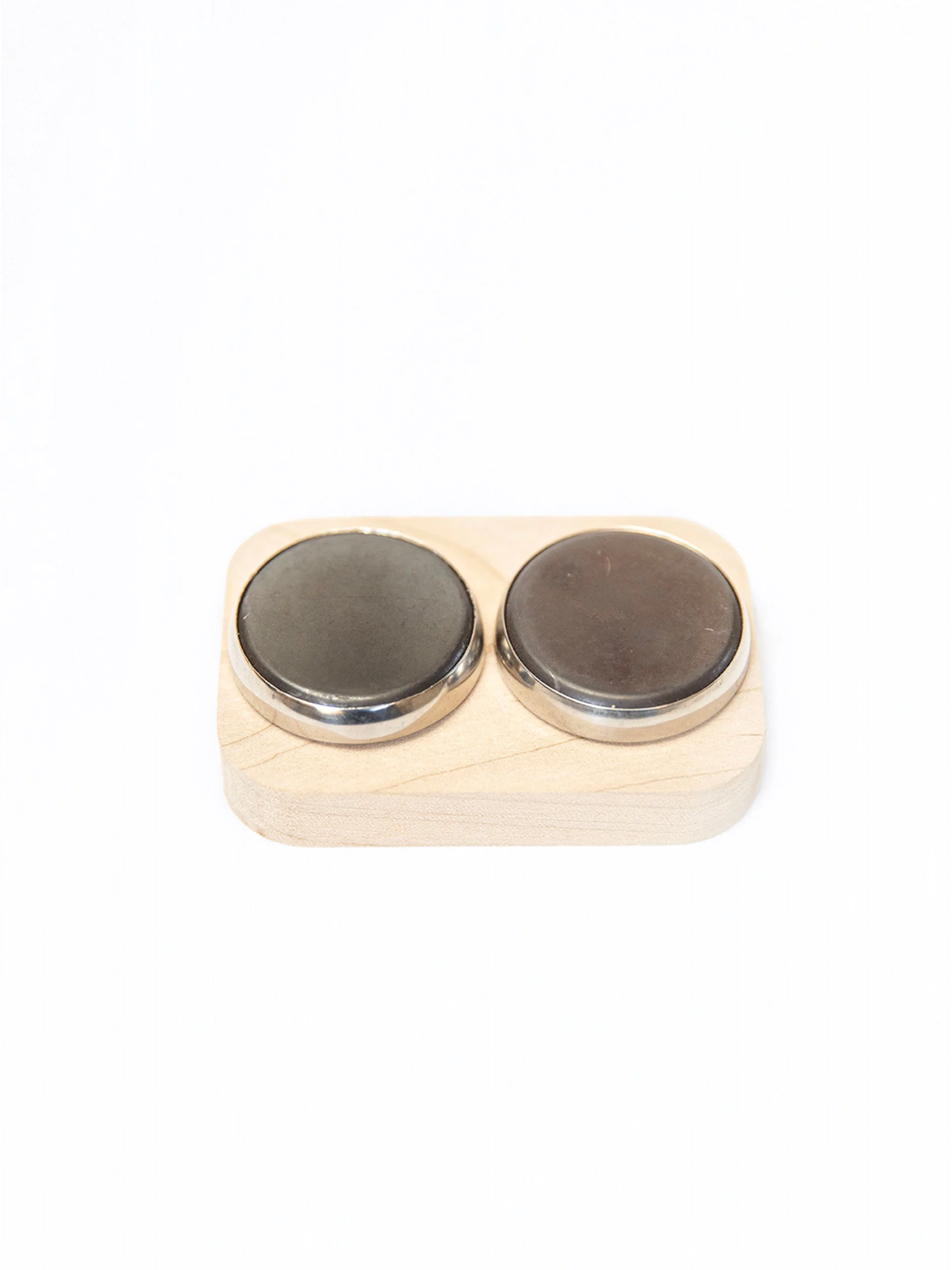 The upgrade kit includes two exquisite mounted hematite stones for seamless installation into your HeartStones, along with a solid maple wooden base for safely storing and elegantly displaying your extra crystals when not in use.